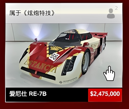 获得一次车友会竞速前2免费领取原价247万爱尼仕RE-7B(超级跑车)。