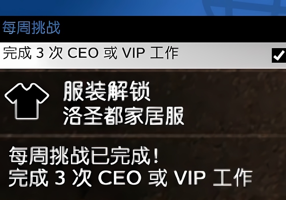 完成本周挑战:完成3个VIP工作免费领取洛圣都家居服。