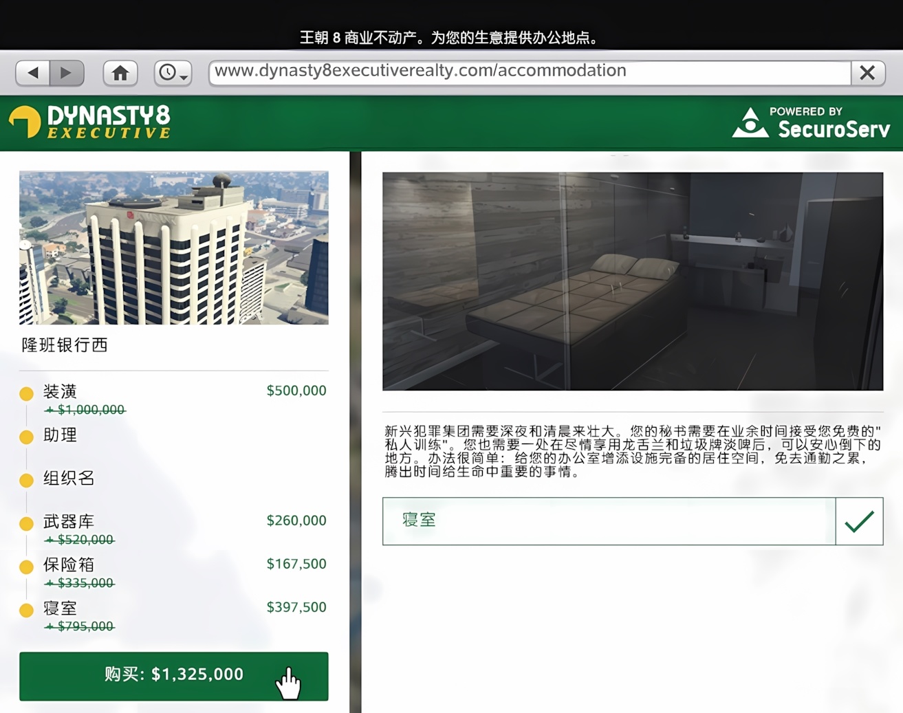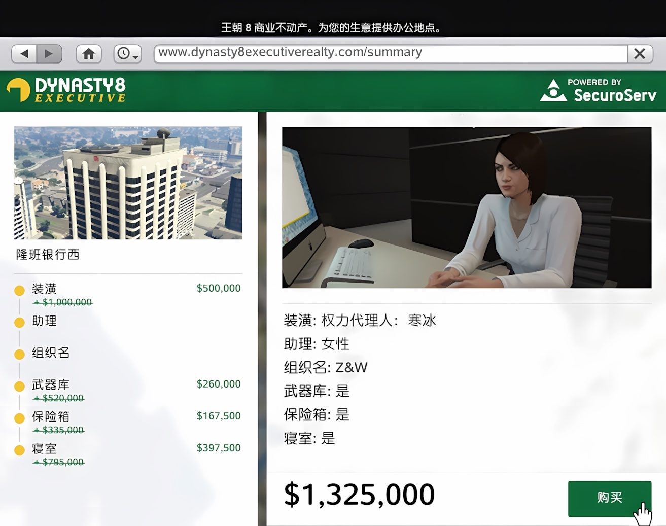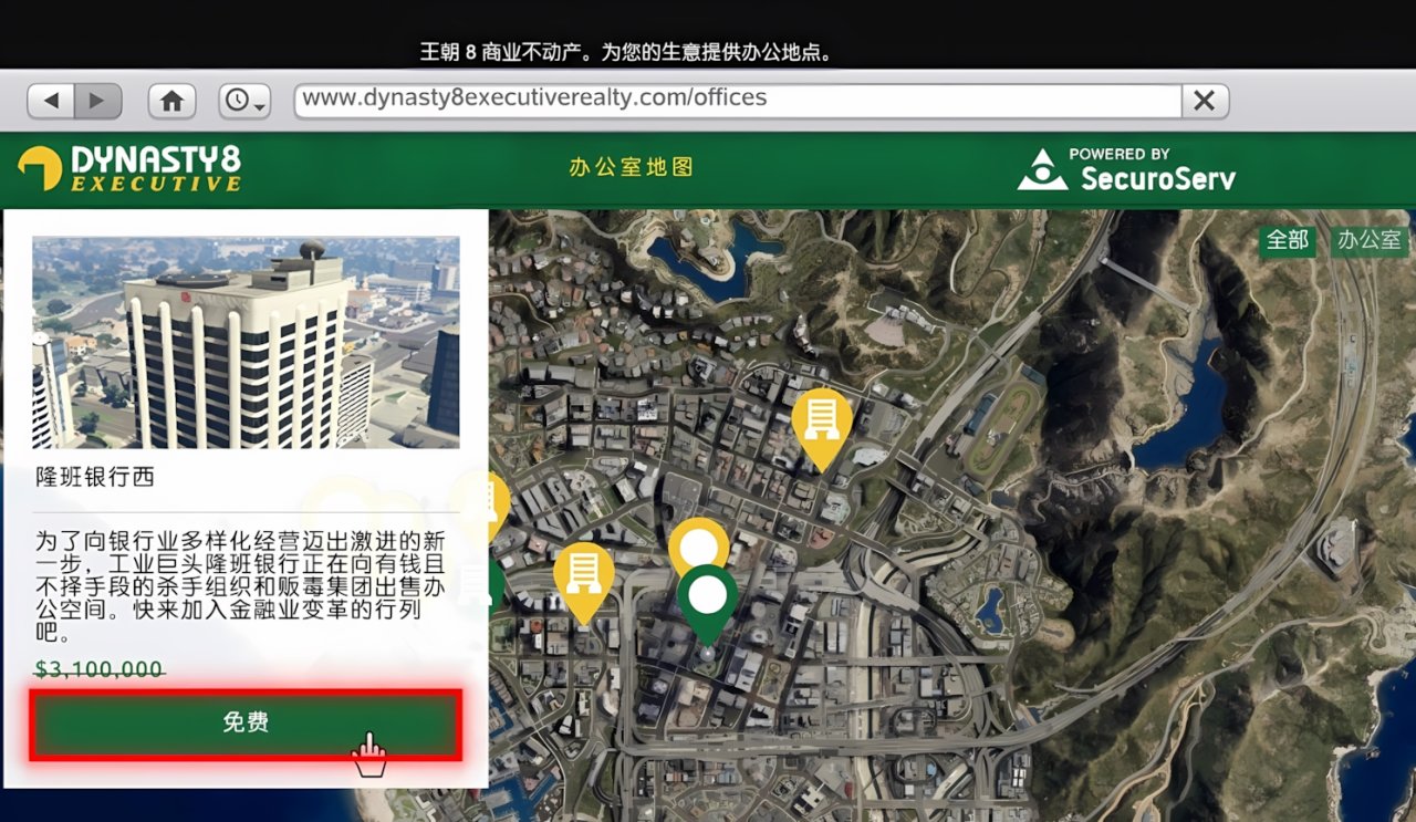 点击“免费”,办公室本体是免费的,其他装修升级项都保持不变的话即可以0元价格买下。
