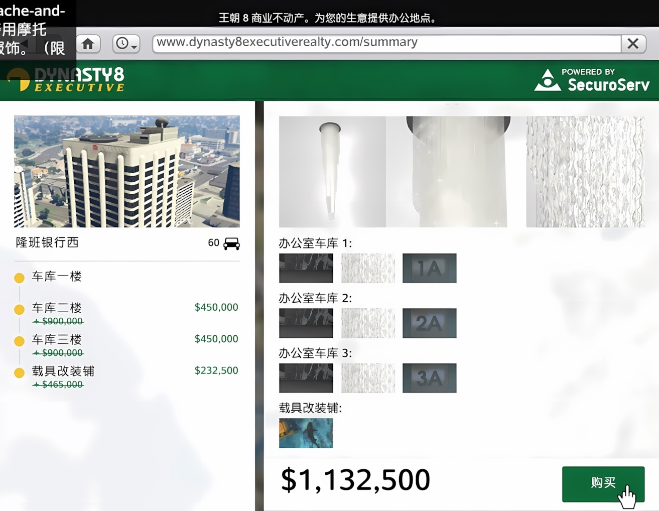 11月13日-11月20日本周,购买办公室资产:本体、升级翻修项、装潢、办公室车库、办公室车库装潢,全部享受5折优惠!