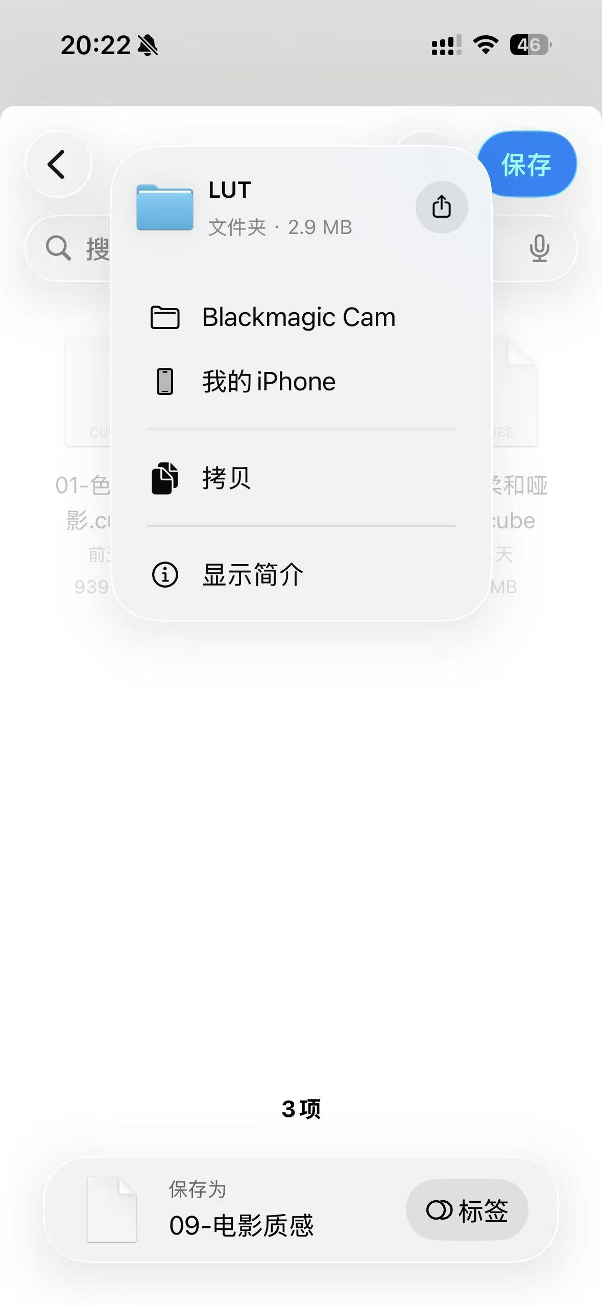 然后在这个页面选Blackmagic Cam里面的LUT