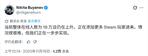 今日,製作人尼基塔宣佈《逃離塔科夫》在線人數突破18萬且仍在持續上升。