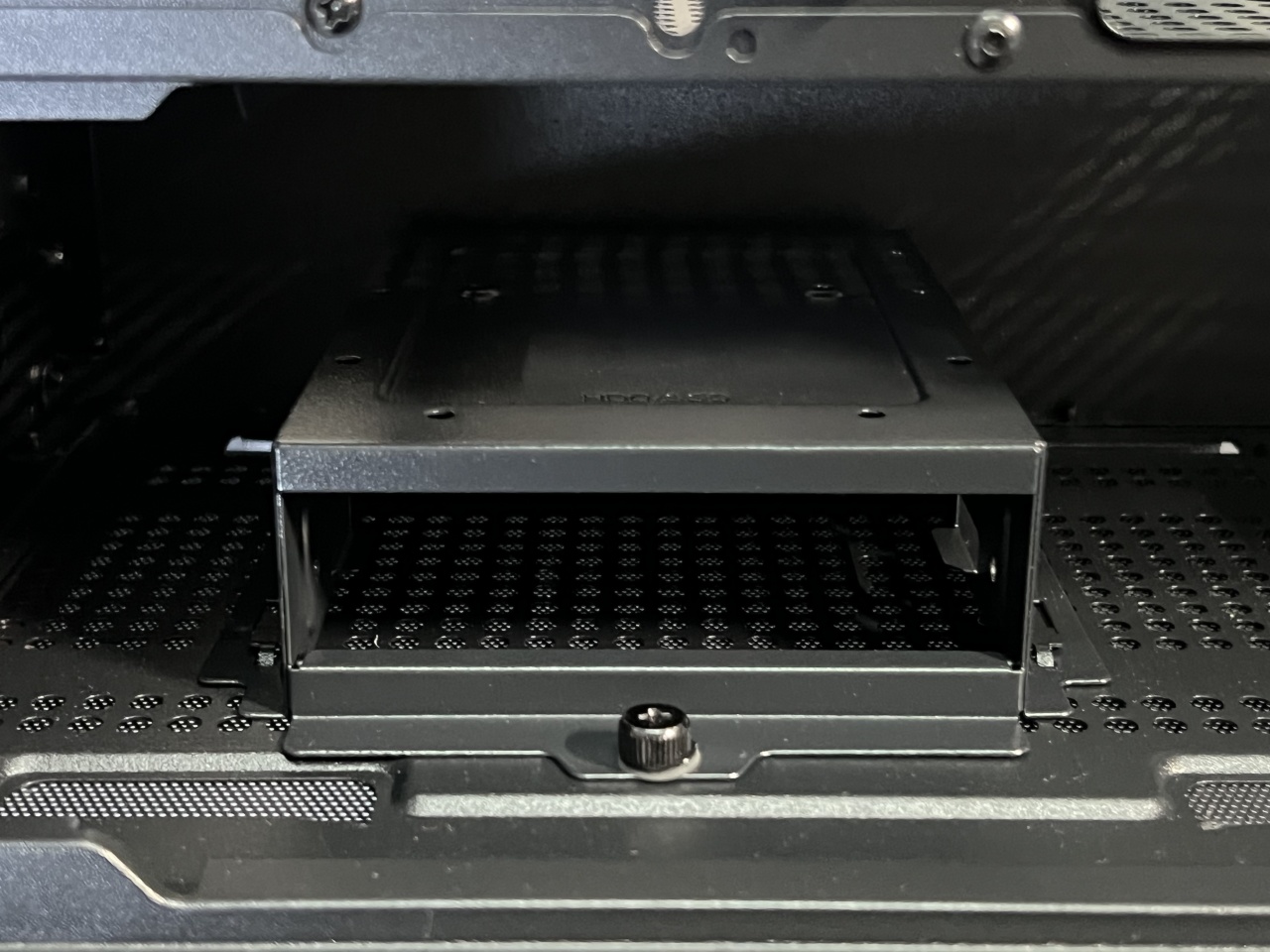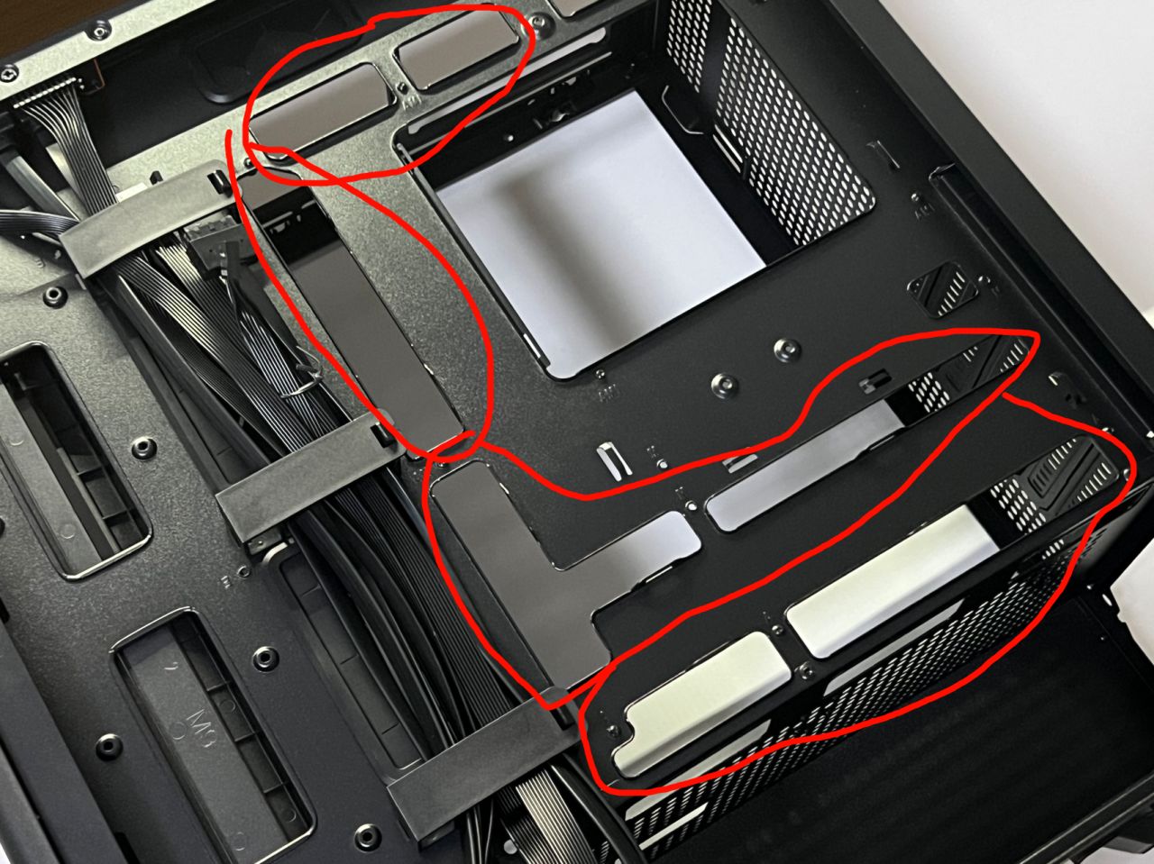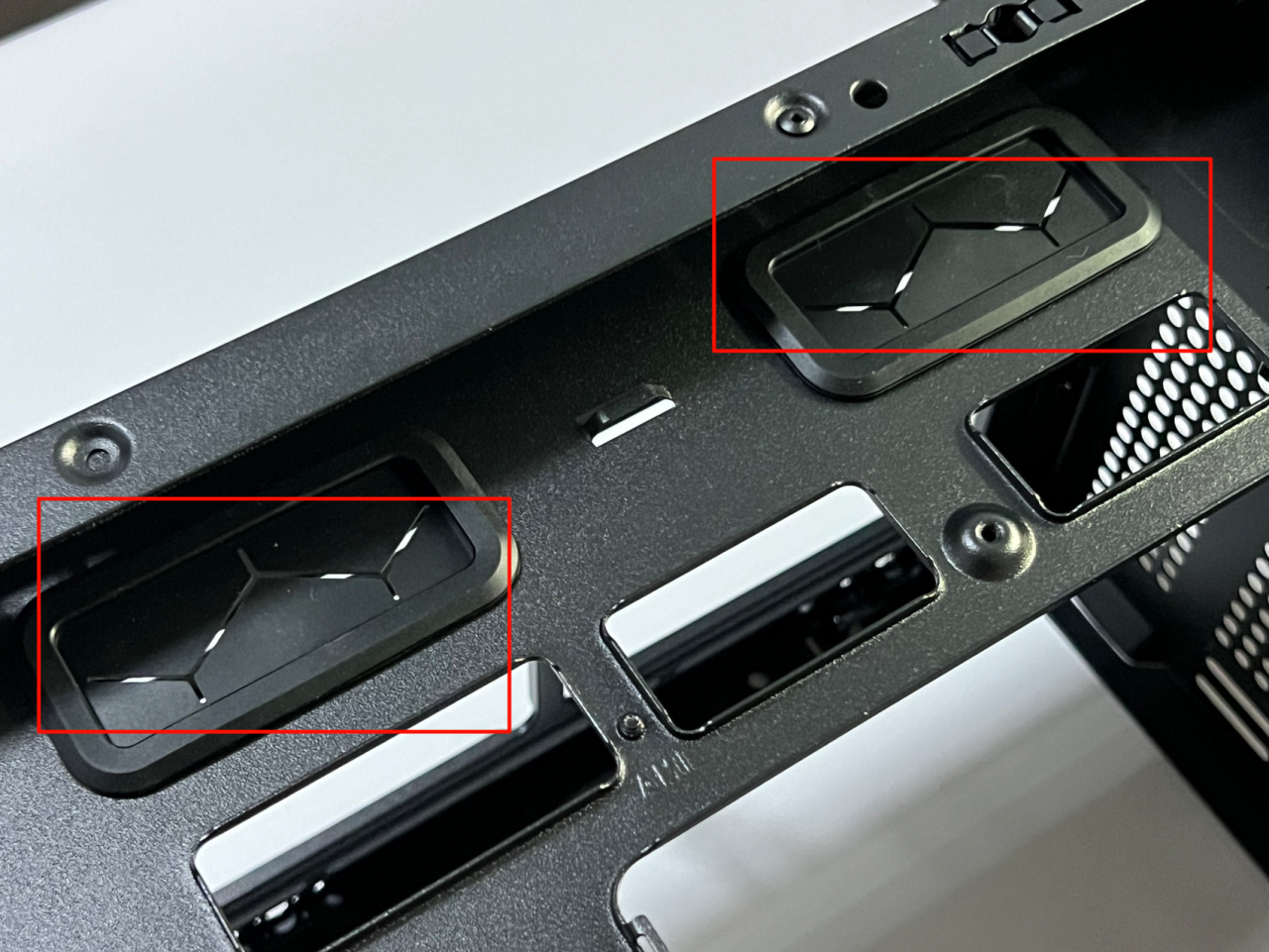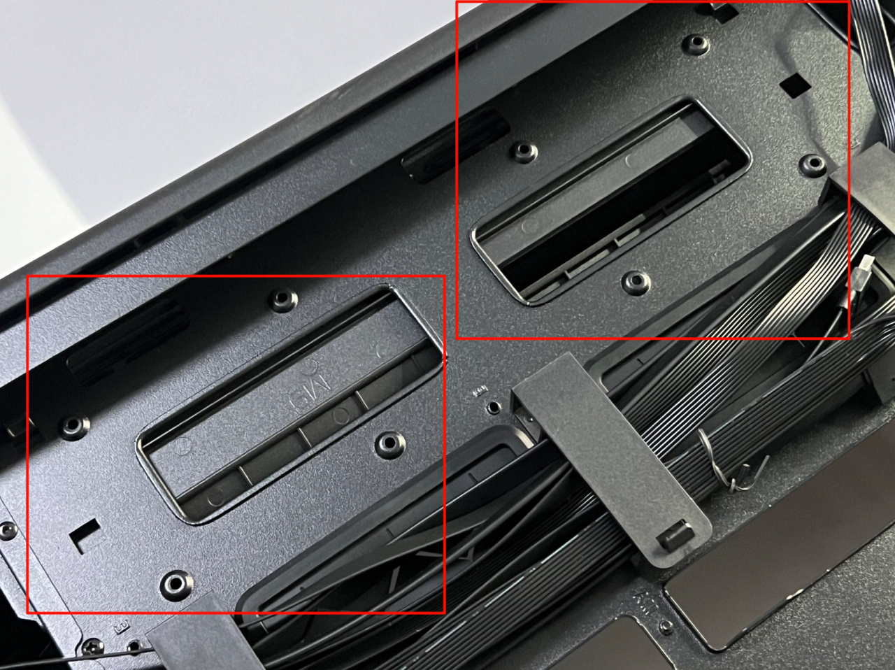 背部主板固定架左侧还提供了两个侧挂的2.5英寸硬盘槽位,机械大师这边也是知道底部的硬盘位有点少,底部硬盘笼只支持2块3.5英寸硬盘,或者2.5+3.5的两块硬盘,所以给背部也增加了两个槽位。