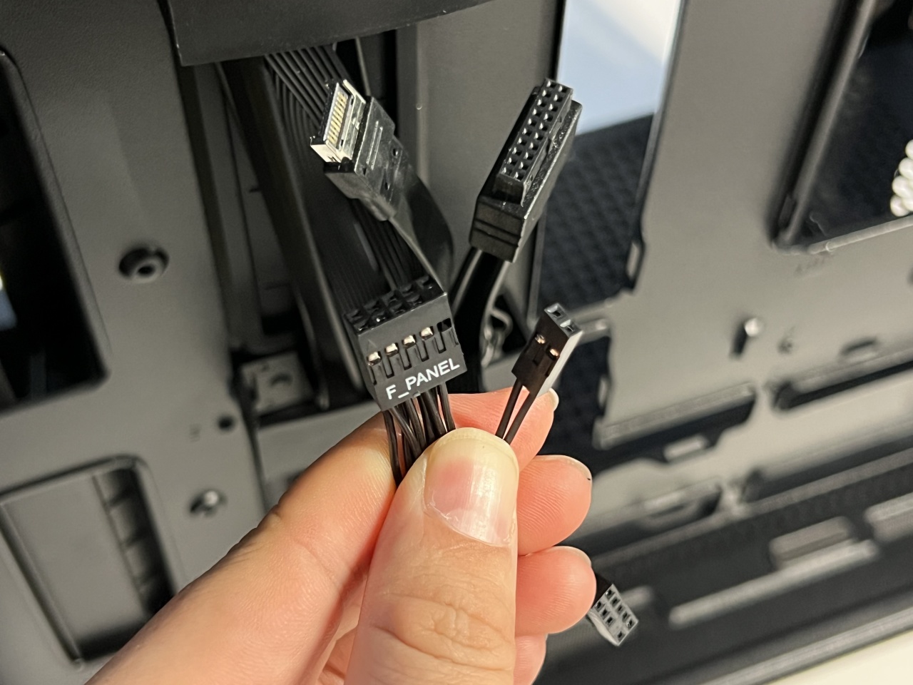 接口开关依次是开机键、重启键、2个USB口+1个10GBps的满速C口,还有个功能按键,引出端是个2针的母头,可以插主板上控制主板的BIOS重置功能,很实用。