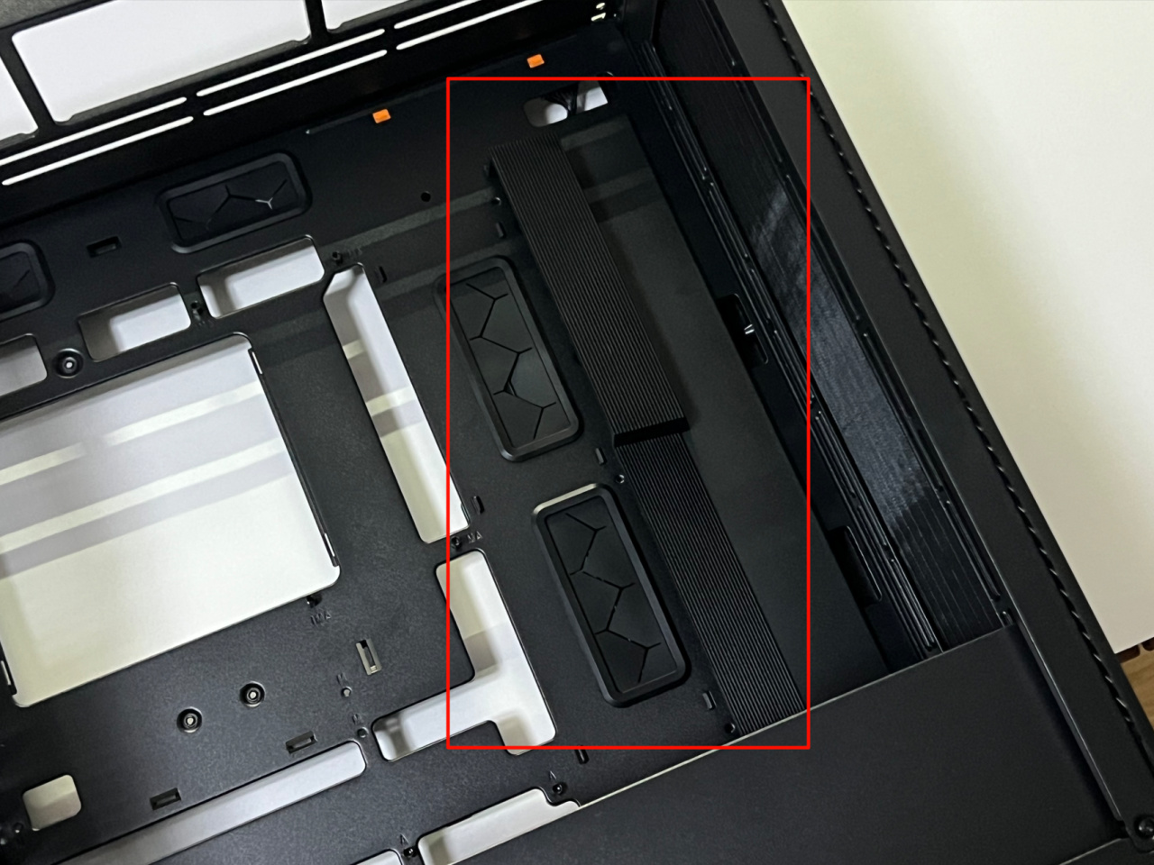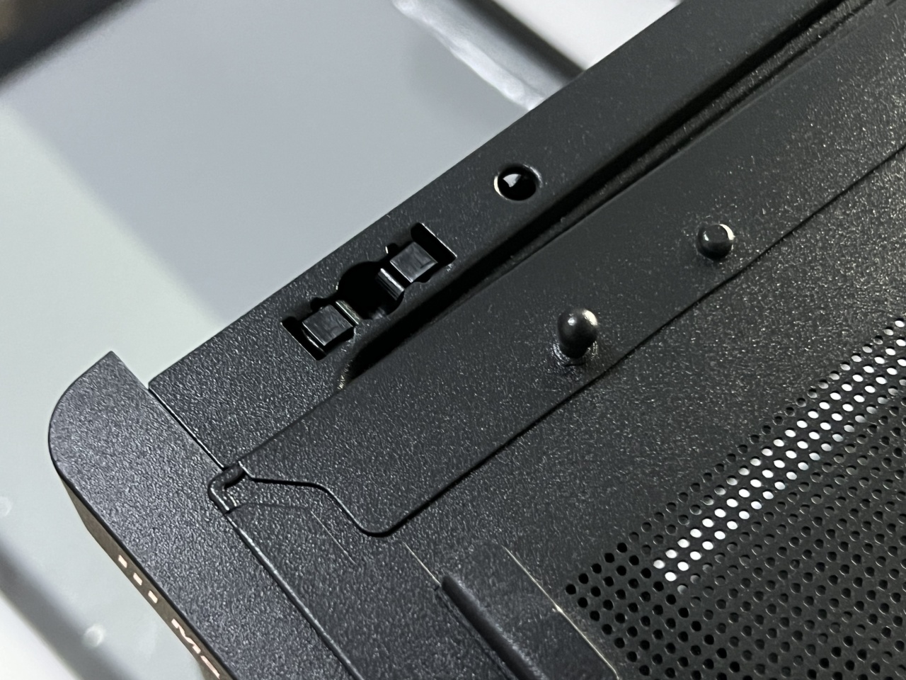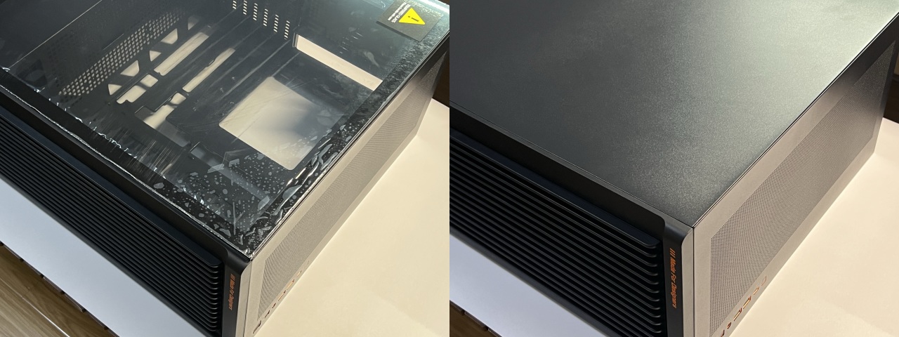 这里说一下,D36的左右盖板+上盖板全是用的免螺丝快拆设计,通过球形钢钉卡进凹槽里固定,方便玩家打开机箱升级设备或者清灰什么的,而且玻璃盖板和钢板能互换,如果你不喜欢左边侧透的RGB可以把右边的钢板换到左边来挡住RGB,让D36变成一个无光机箱。