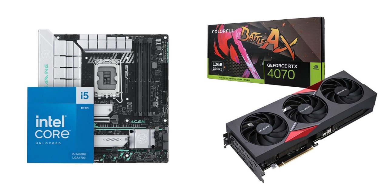 朋友这次的装机配置是i5-14600K+华硕B760M天选+七彩虹RTX4070战斧豪华版,今年双十一虽然固态和内存条在涨,但显卡和板U套装价格有回落,朋友这块4070战斧不到3K就拿下了,机箱他选择了机械大师设计师系列—D36。