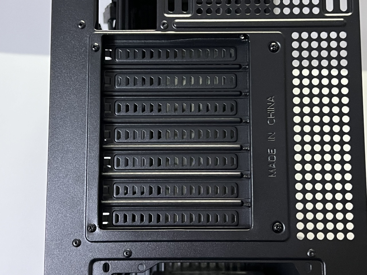 D36还支持显卡竖装,随机箱附带了一个显卡竖装支架,自己只需要买根延长线就行,后面挡板一共有7条PCIE扩展槽位,想要竖装显卡的话直接把它旋转90°即可