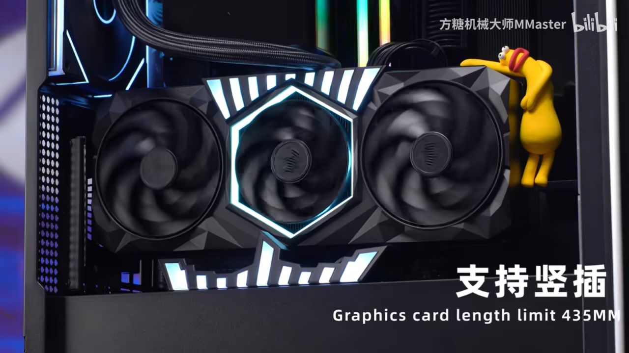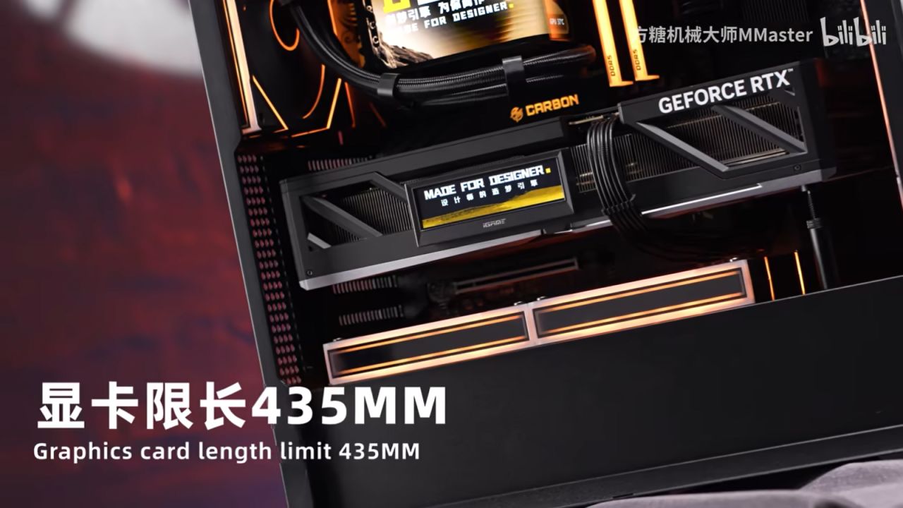 D36在前部没有安装风扇的情况下,最高支持435mm长度的显卡,前部安装风扇的话就要看风扇的厚度了,反正至少能放得下400mm长度的显卡。