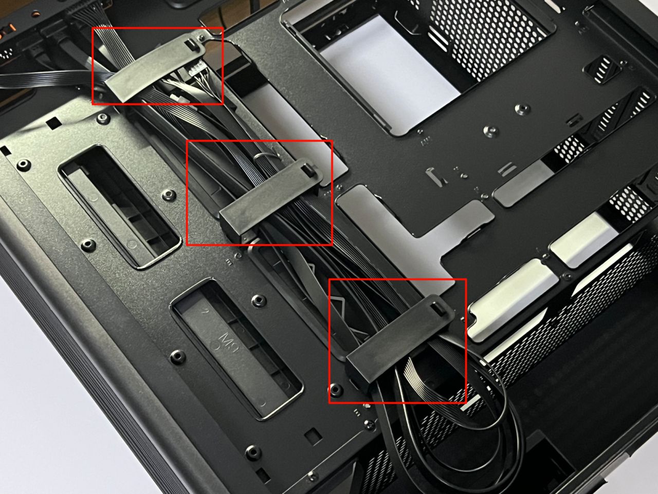 D36背部很贴心为给玩家提供了三个便携式的理线卡槽,一定程度上能减少理线带来的头疼问题;走线孔全都配备了胶圈,防止线材滑动磨损,还能带来观感上的整体性。