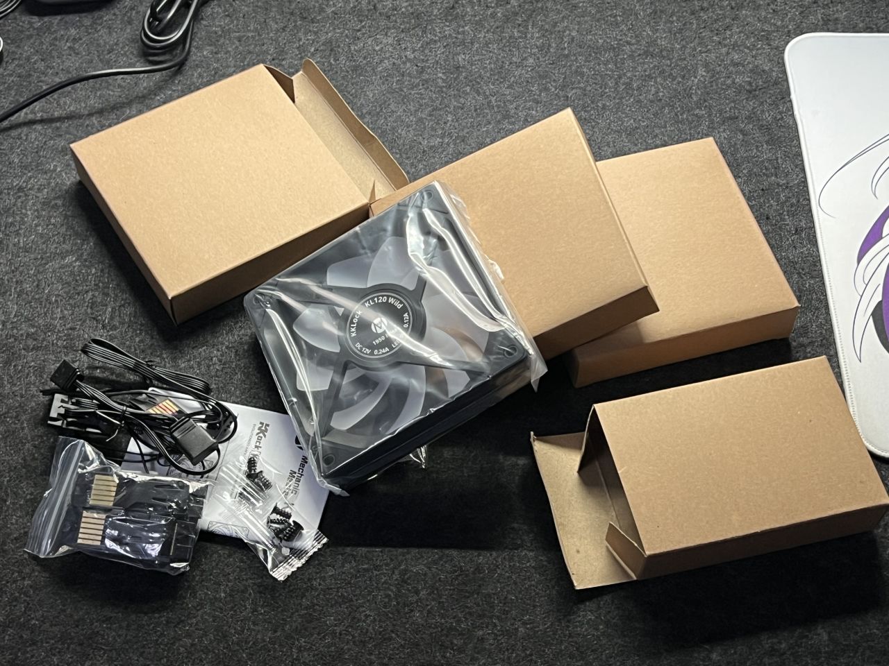 朋友买的D36不知道是什么版本,里面还送了三个120mm的风扇。