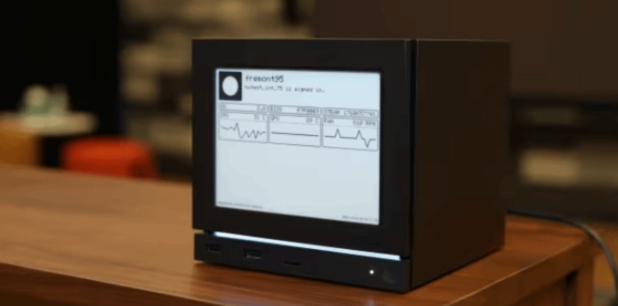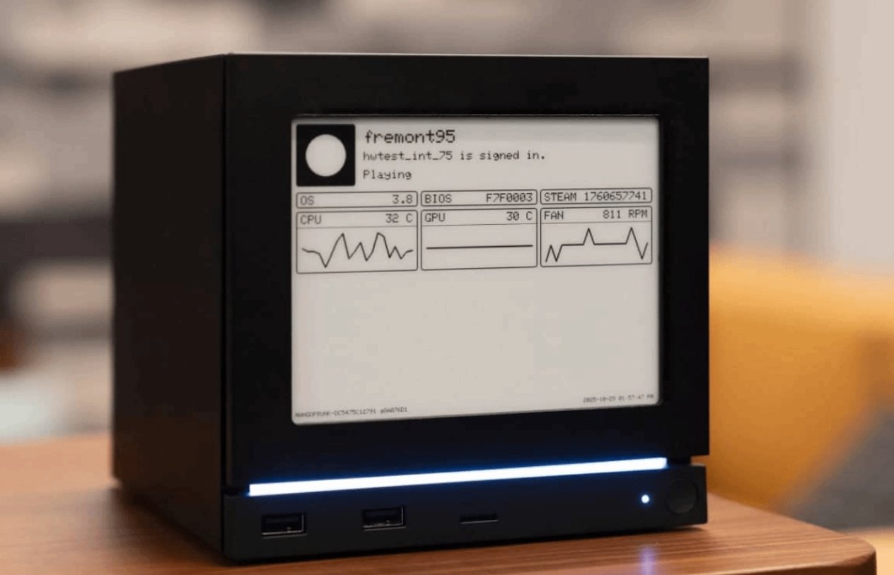 Valve工程師開發了一款特殊的電子墨水(E-ink)顯示前面板,能夠實時顯示CPU和GPU的溫度、負載情況以及風扇轉速等系統運行數據。然而,這款功能獨特的墨水屏面板僅作爲內部測試使用,Valve明確表示不會將其投入市場銷售。