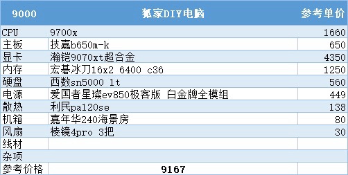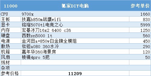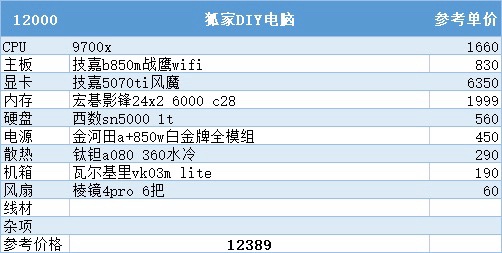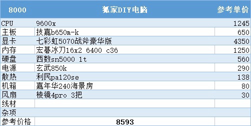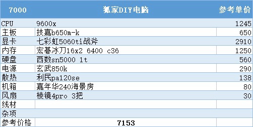到了7000这个价位原本可以上到9600x加5060ti16g,但由于涨价现在只能上到8g版本的60ti了这也是这次配置推荐里唯一一个不得不缩水配件才能维持住这个预算的配置了