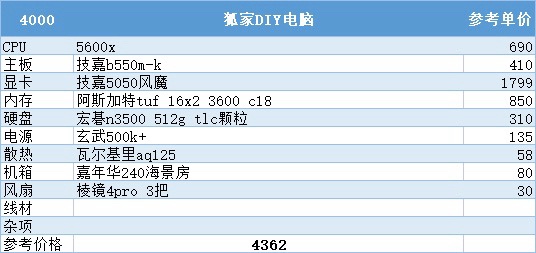 四、4000元预算