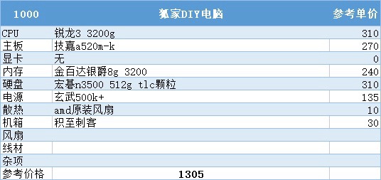 一、1000元预算