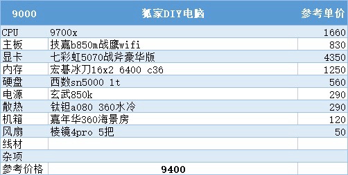到了9000这个预算直接拿出9070xt,4k畅玩无压力,不过说实话如果不是预算真的很紧张还想玩4k的话我还是建议不要上a卡(掉驱动的现象真的很严重,跟供电什么的完全没关系,单纯卡有问题)我这里给盒友售后的a卡太多了