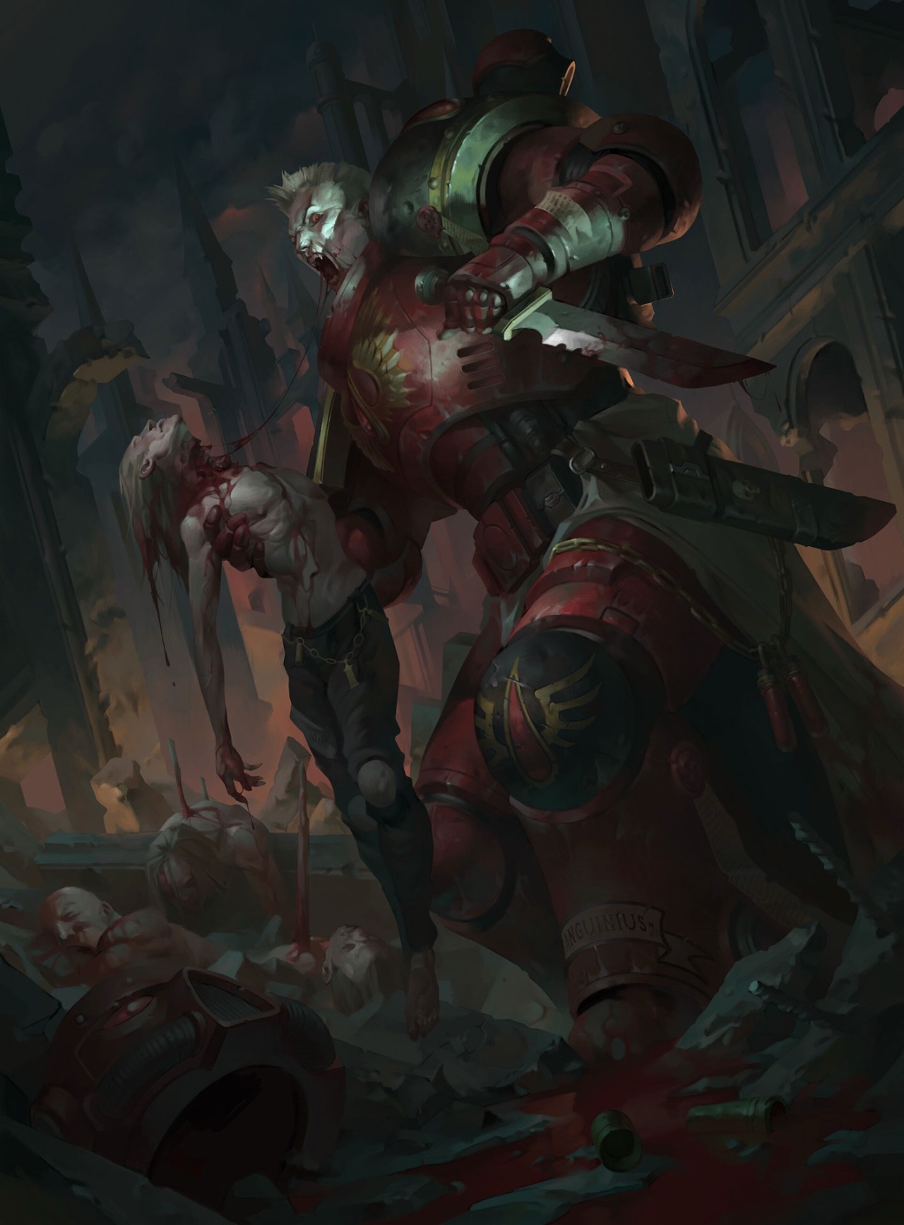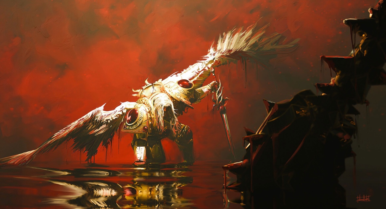 鲜红的动力甲、金色的圣像、翅膀与血滴的纹章,仿佛从宗教油画里走出来的天使军团:高贵、优雅、近乎完美。可等你真的翻开他们的故事,就会发现,这一身光辉几乎都是拿痛苦和牺牲硬撑出来的。