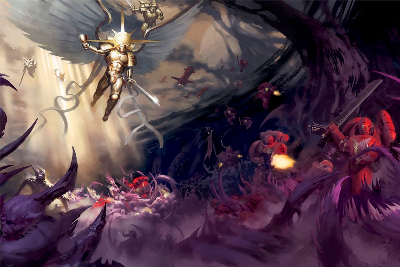 这场“天使殉国”的戏,是圣血天使最核心的悲剧,也是无数插画、小说封面的出处。