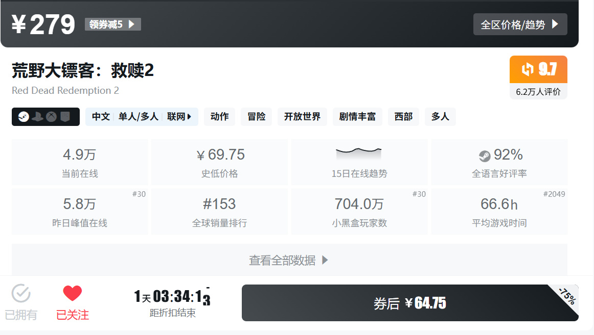 7.《荒野大镖客:救赎2》