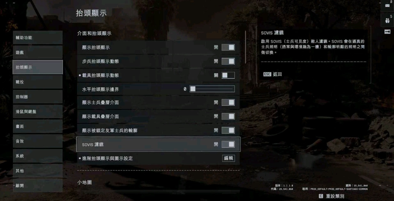 后面看很多玩家讨论,发现这个其实是一个可以自己调的设置,在抬头显示中,找到图中这个滤镜打开就行。