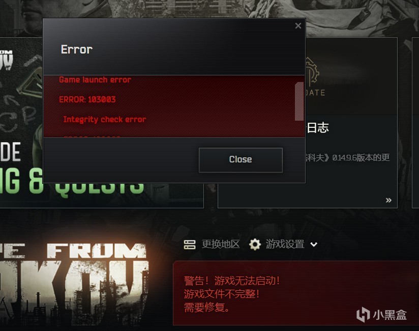 错误:103003 / 109002 / 游戏文件不完整!需要修复 / 资源验证错误 / 游戏完整性检查错误 / 文件损坏