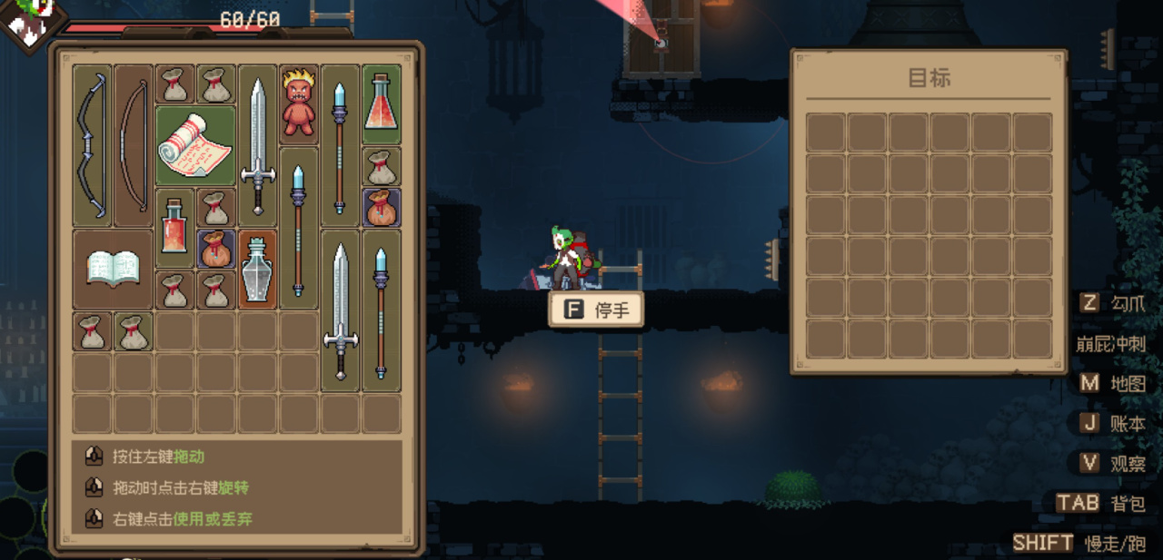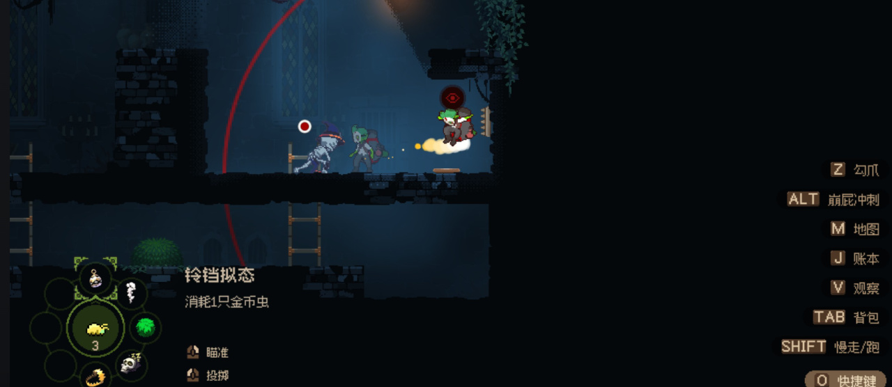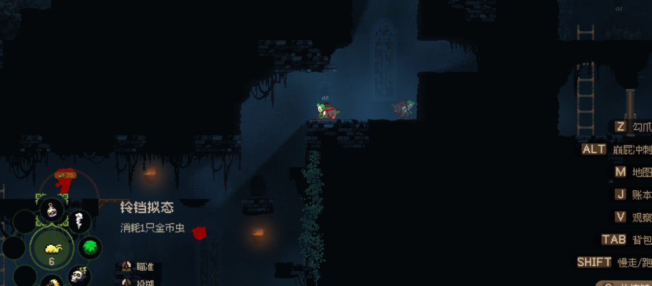 游戏当中我们并不能像现在的很多恶魔城一样通过传送快速的从a到b,我们要做的就是真正的成为一个卑微的哥布林,我们需要时时刻刻注意可能会出现的敌人,通过潜行,丢道具等方式溜之大吉。