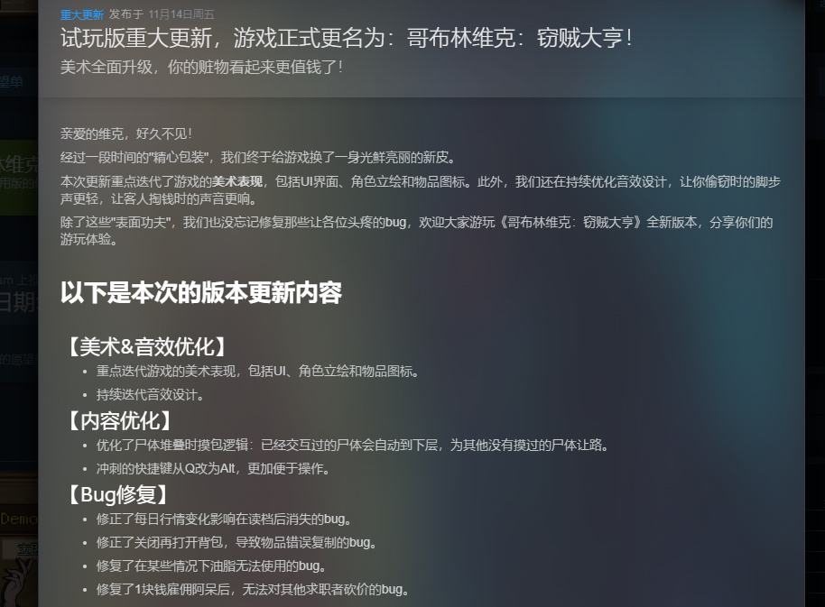 但好在制作组非常的听劝,而且游戏现有的完成度已经很高了,个人还是非常好奇游戏后续的发展,希望能成为哥布林游戏的代表。