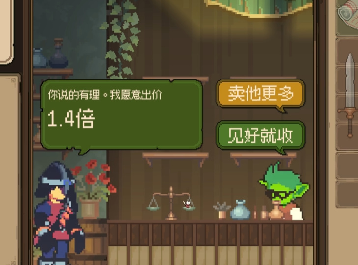 刚刚给大家介绍了游戏的背景,实际上游戏的玩法和背景的衔接是非常自然的,在开始我们就直接继承了父亲的商店,成为了一个商人,既然是哥布林商人,自然要当个奸商。