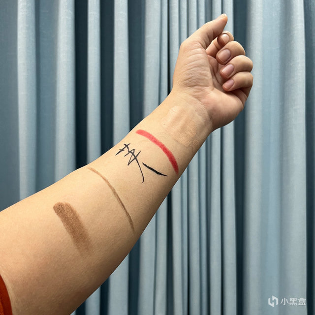 在手臂內測塗上彩妝,待彩妝幹以後。洗面奶搓出泡沫揉搓清洗彩妝,從清洗結果看,口紅和眼線筆會有輕微殘留。綜合來看,清潔力適中。