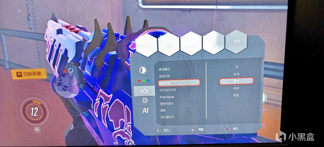 响应速度方面,屏幕也做出了动态调节模式。最佳档位的时候,根据显示器当时的帧率来智能的动态调整响应速度。我们也可以手动调节到“极速档位”,这个时候响应速度可以快到1ms,达到最极致的游戏体验。漏光方面也在纯黑背景下看了看,亮度最大的情况下屏幕整体呈现均匀的黑色,没有光线渗出的发生。