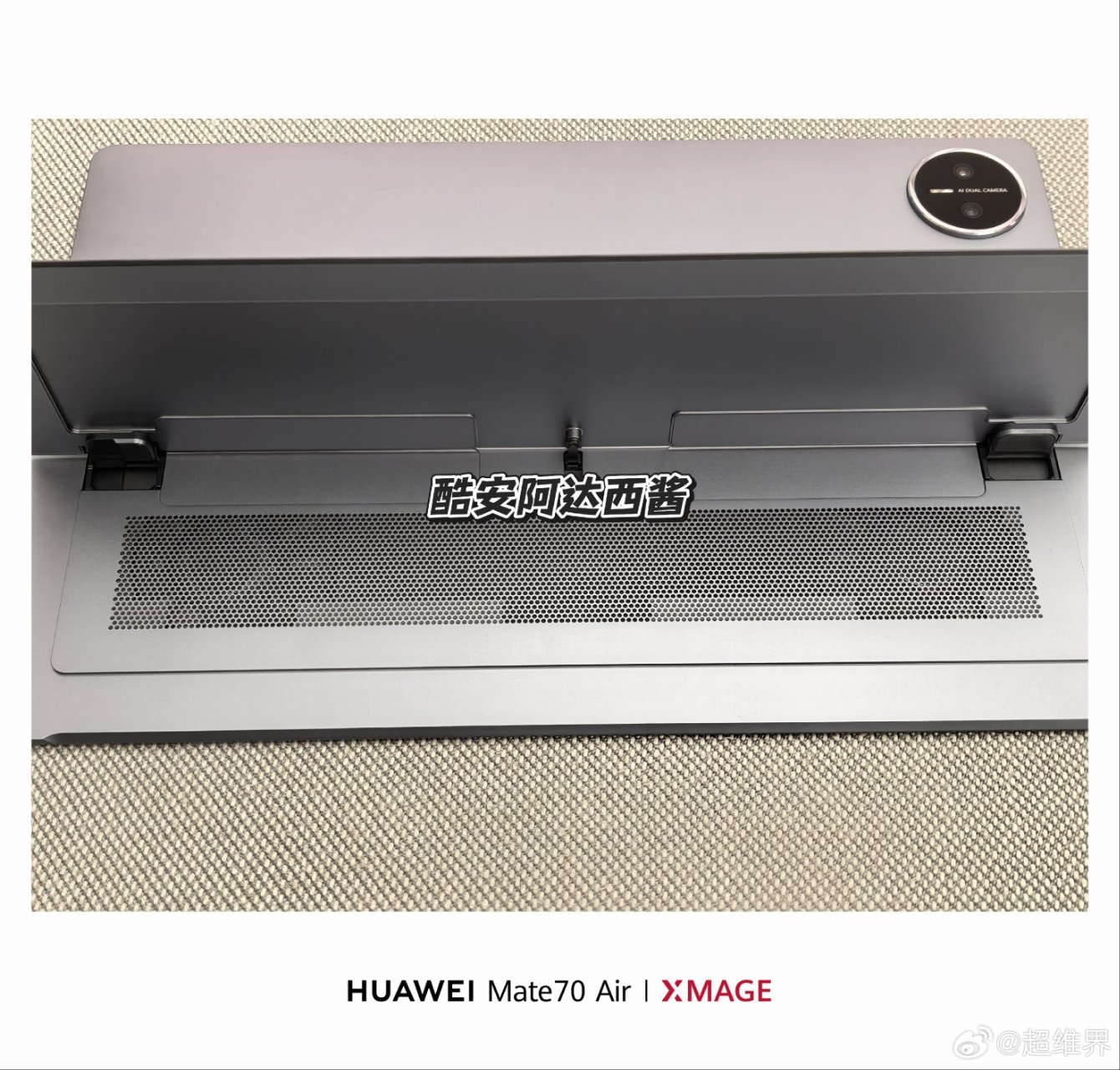 近日,有網友曝光了華爲 MatePad Edge 二合一旗艦平板,根據曝光圖顯示,機器外觀採用圓形雙攝,自帶轉軸支架,底部爲雙風扇設計,風扇出口爲開合式。同時可通過背部觸點連接配套鍵盤。