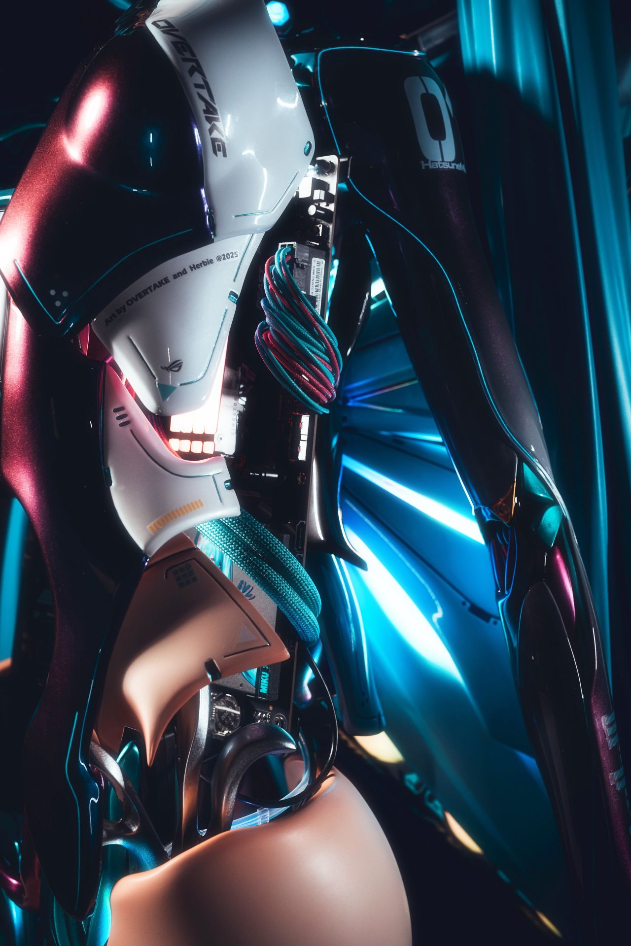 2025年WirForce公开展示由我和黄小洁制作的初音未来主机,以"进化论"为主题诠释这个角色——从最初的软件形态逐步演变至如今的酷炫形象。
