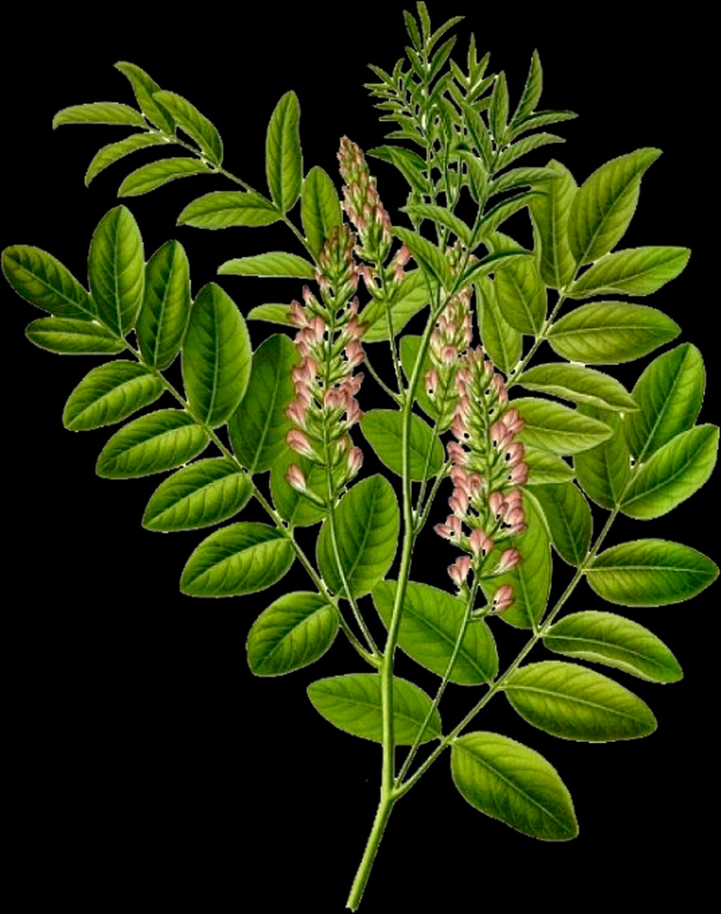 神農採藥 見到一種葉像羽毛花像紫色蝴蝶的植物,就摘下來咀嚼。甜津津,香味撲鼻,他把整顆採下,發現連莖和根都是甜的。