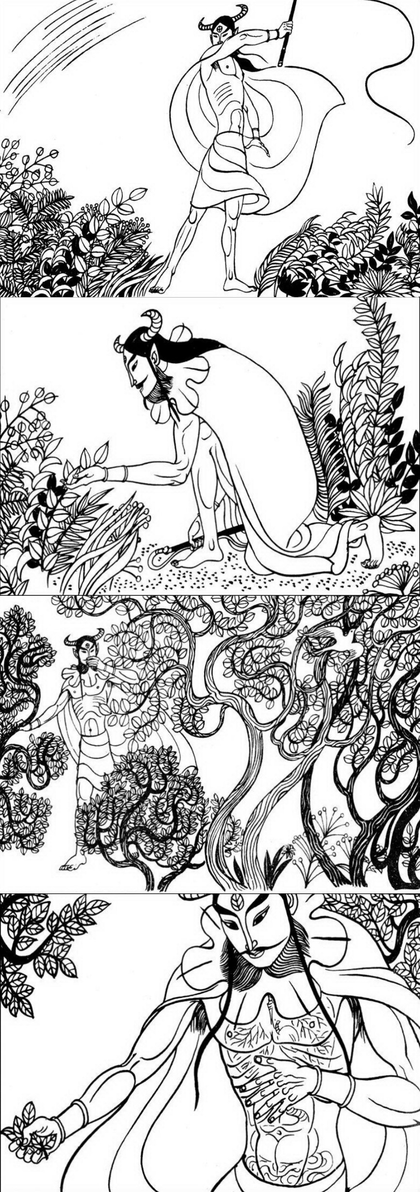 神農舉起神鞭,鞭打路邊的花草。