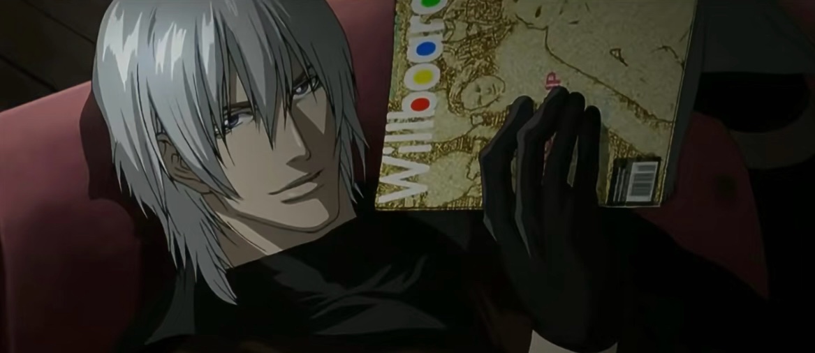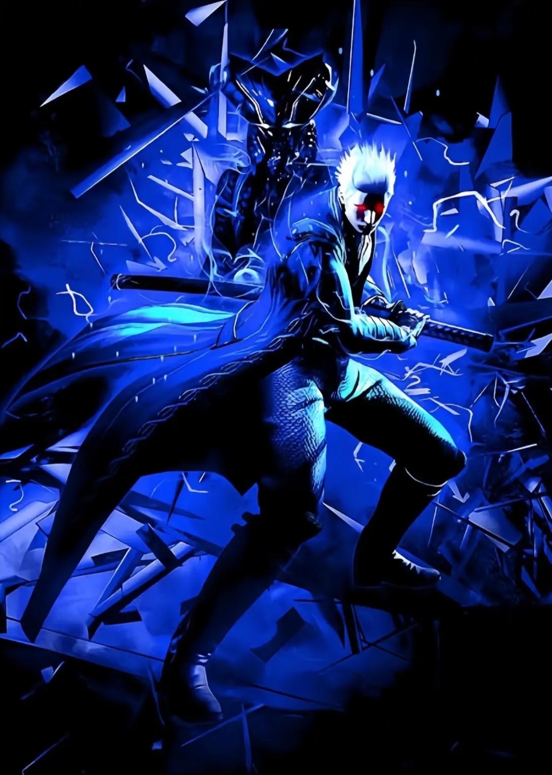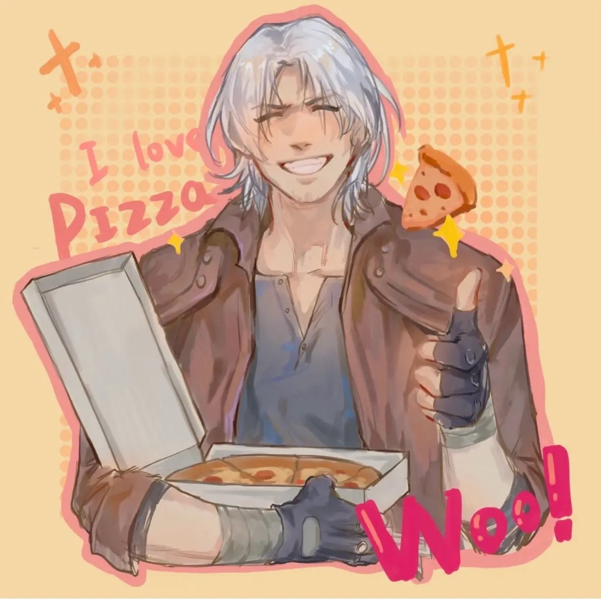 標誌性的銀白髮在加上紅色風衣,他是最喜歡喫着草莓聖代和披薩的傳奇惡魔獵人。