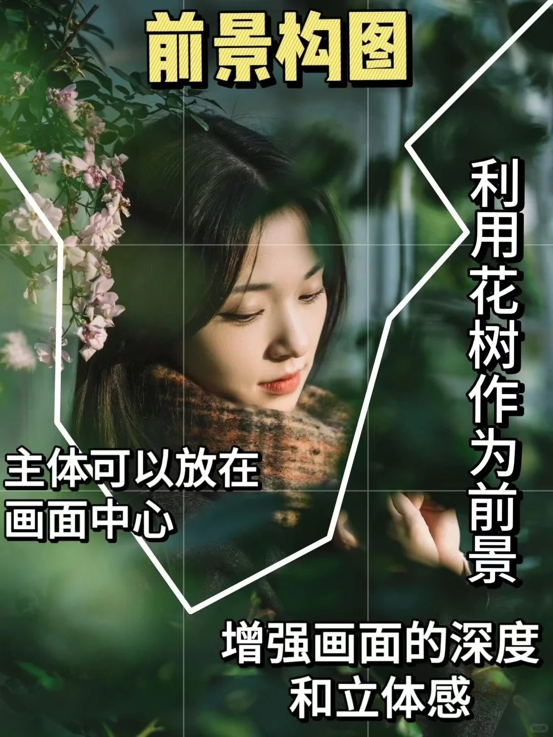 4. 前景構圖:花/樹葉當前景(花叢/小店);