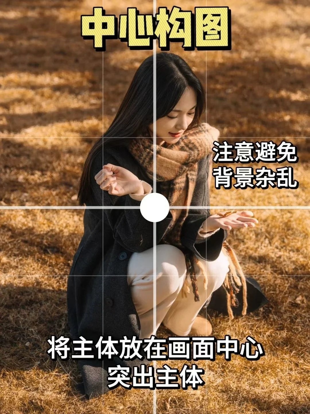 5. 中心構圖:主體放中間(乾淨背景,突出焦點)。