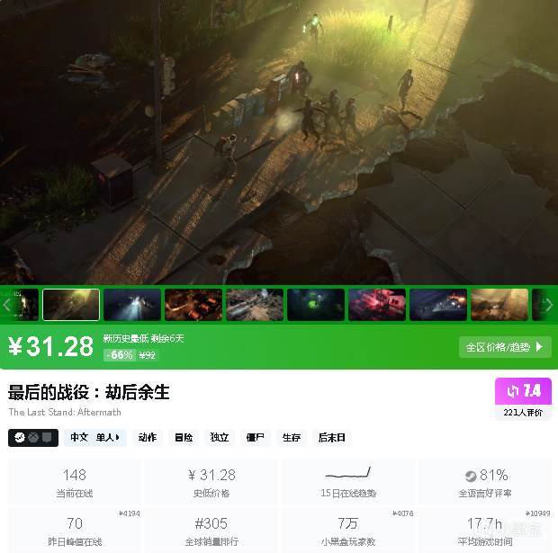 24.《控制:终极合辑》:原价198元,现22元,折扣率93%。