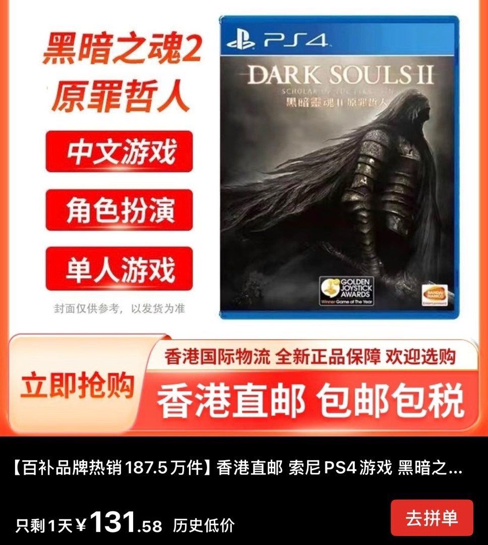魂2好价再补,131.58(仅85券)