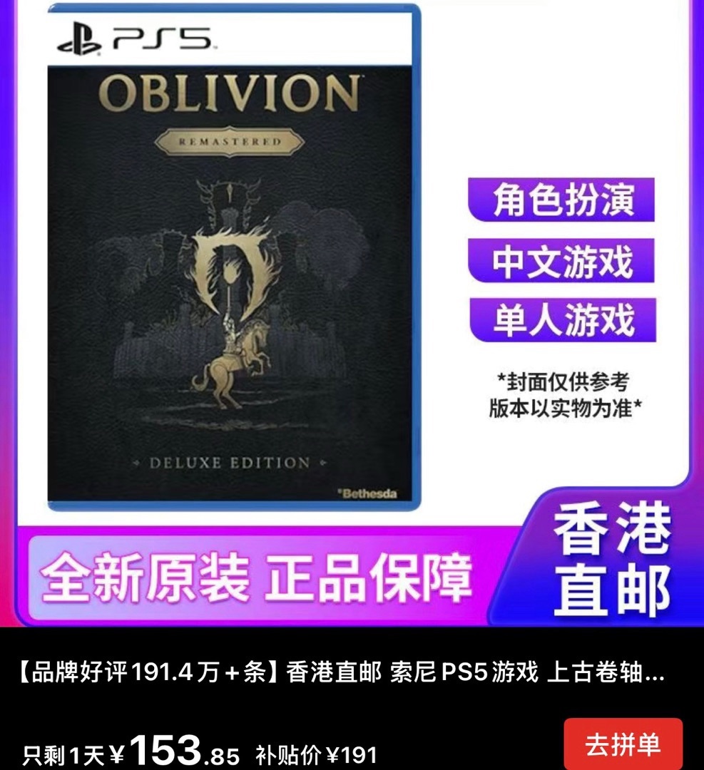 老滚4港版豪华版再跌,新史低153.85(仅85券)