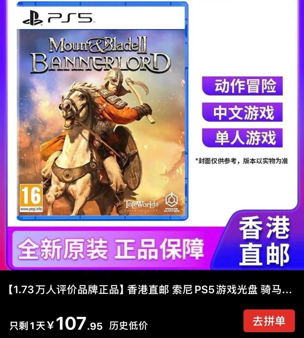 骑砍2这个好价其实挂了有一段时间了,大家比较担忧的是这一家店,港版的确是好价,比上月低了5块,其次是主机不能打mod,的确是吸引力不太高。