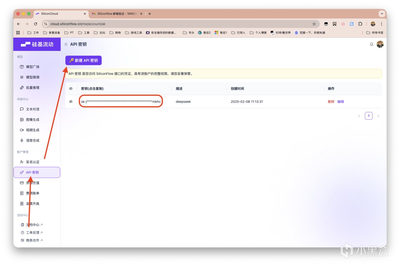 在你的常用AI平台,创建一个API Key备用。