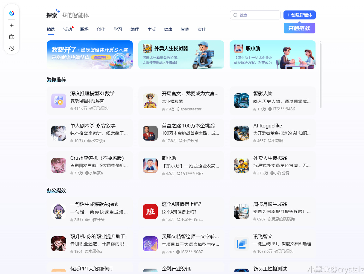 特别是「智能体广场」,包含了 35000+ 各种场景应用。