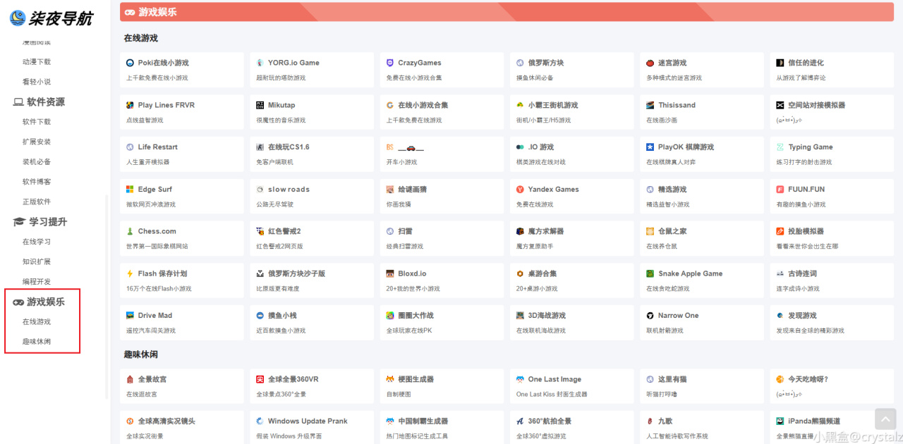 其中「游戏娱乐」分类收集了 80+ 休闲娱乐网站,摸鱼爱好者记得悄悄收藏!