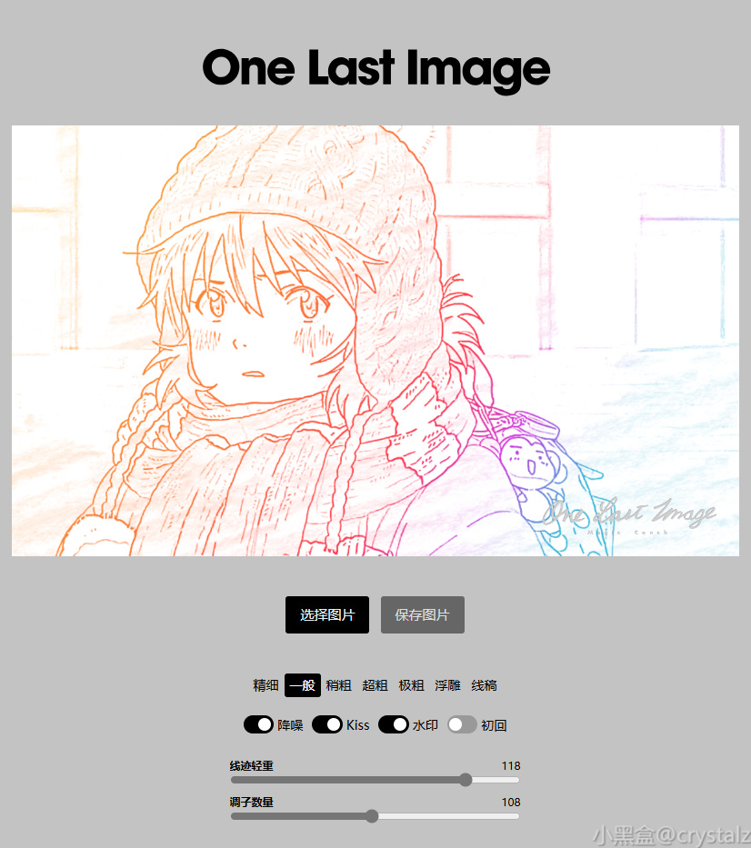可以自定义调节线条粗细、轻重、调子数量、水印等。