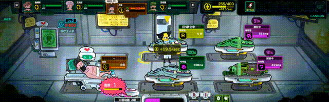關於支援玩法方面,戰鬥並非完全自動。醫療車外圍配備了武器系統,只要你當前EN充足,就可以發射一枚大炮,鎖定敵人並進行大範圍的AOE攻擊。