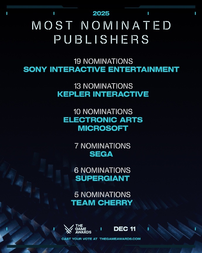 值得关注的是,年度最佳游戏提名中首次同时出现两款独立游戏——《空洞骑士:丝之歌》和《哈迪斯2》。但由于TGA将《光与影:33号远征队》也归入独立游戏范畴,这一届的年度大奖实际上可以被视为三部独立游戏同场角逐,颇具划时代意味。