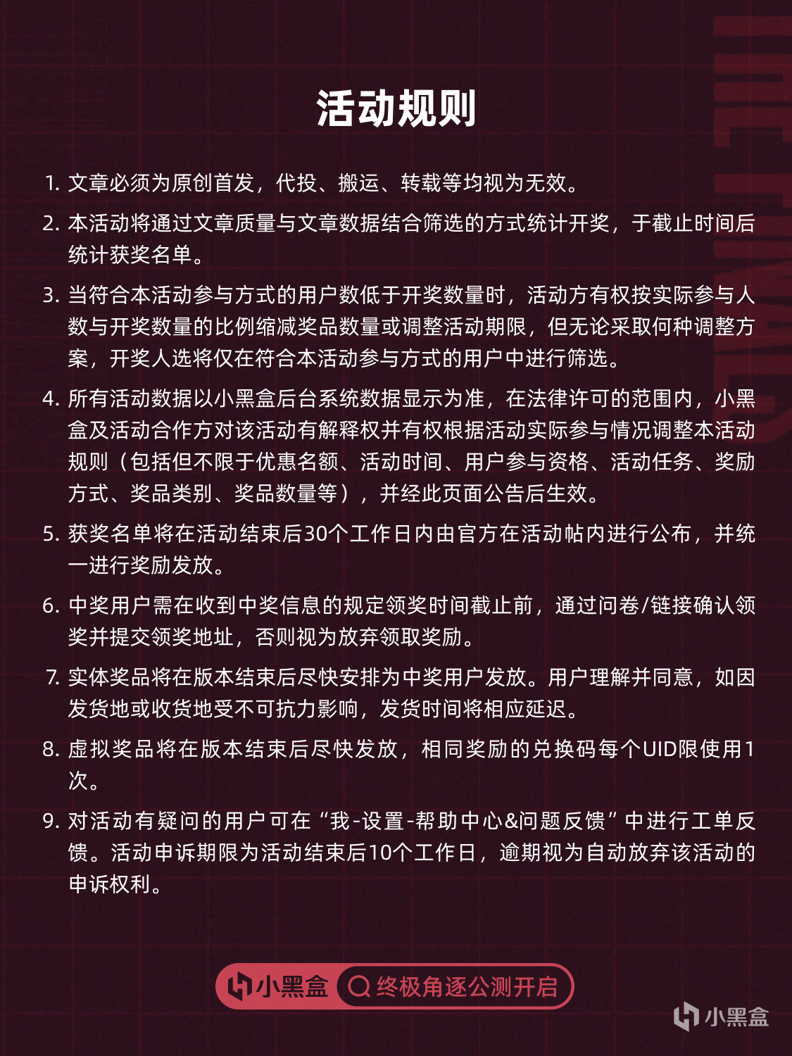 优秀作者奖:小黑盒定制款游戏道具——夹克,按照用户活动期间有效投稿的总互动数据降序,并结合作品质量和主题相关性进行评选10名用户获得