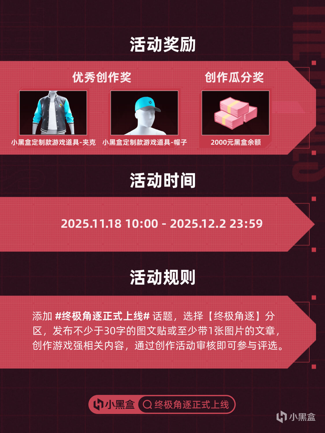 终极角逐11月18日定档上线,小黑盒创作活动同步开启,成功参与活动即有机会瓜分2000元黑盒余额!