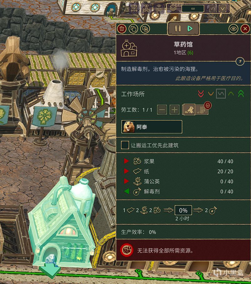 需要玩家建造“草药馆”并收集所需要的各种物资来制作解毒剂来解决。