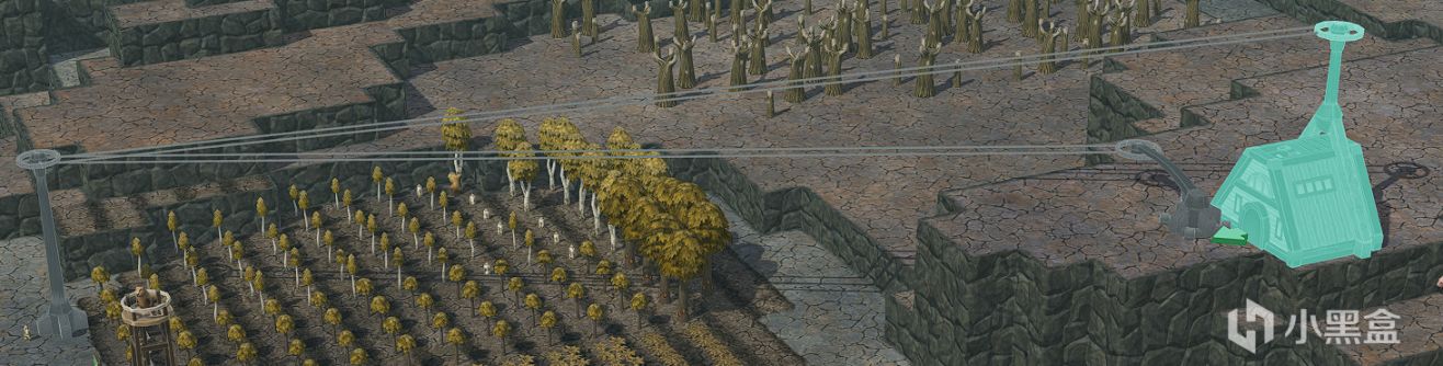 如果高低差实在差太多的话怎么办?这就要使用游戏内的“滑索”设施了。通过建造“滑索站”、“滑索塔架”、“滑索梁木”三件套后,无论多高的地形都可以随意移动。